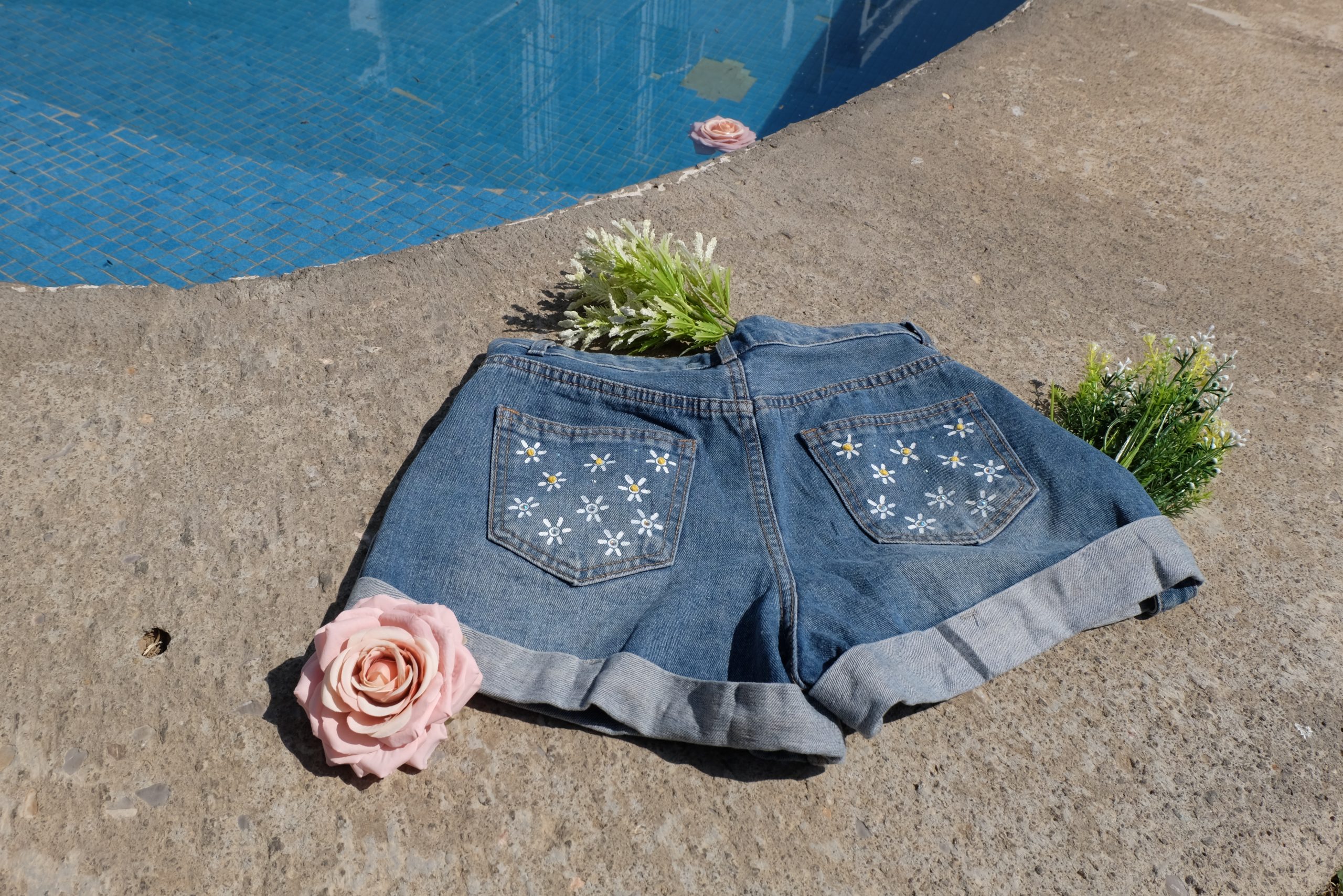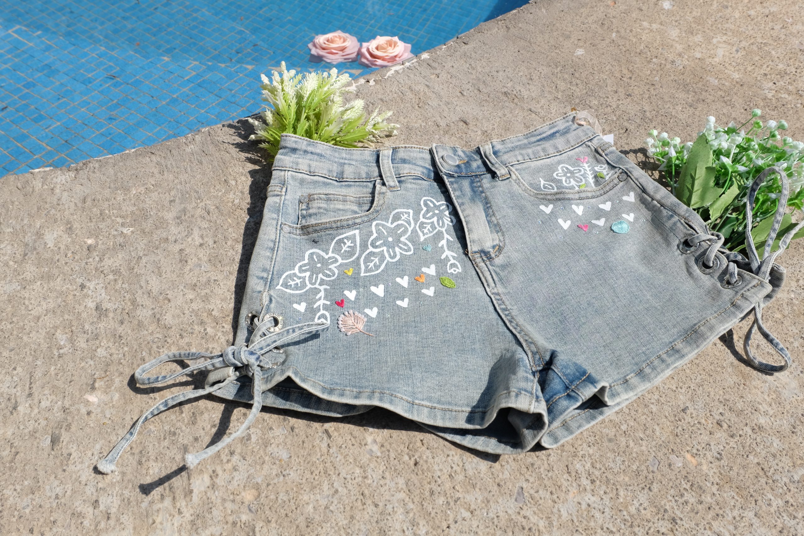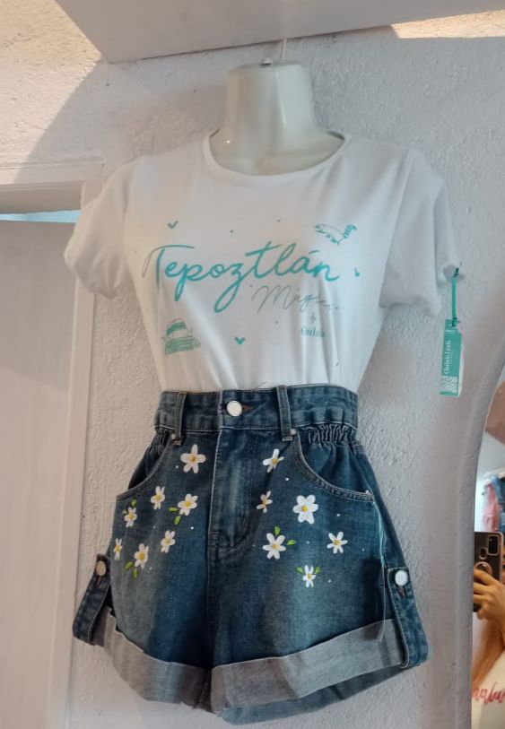 Short pintado y bordado a mano